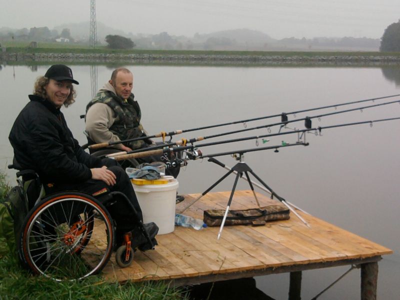 Nedávno jsem vyzkoušel rybaření na sportovním rybníku v Příčovech u Sedlčan. Specializuji se na kapry a doposud jsem rybařil pouze na tekoucí vodě, převážně na Slapech. Chytání kaprů na řece je poměrně časově a technicky velmi náročné z hlediska přístupu k vodě, stále se pohybující hladině, nutnosti zakrmování na velkou vzdálenost a hlavně k neustálým překážkám na dně řeky. O to více náročnější je to pro člověka na invalidním vozíku.